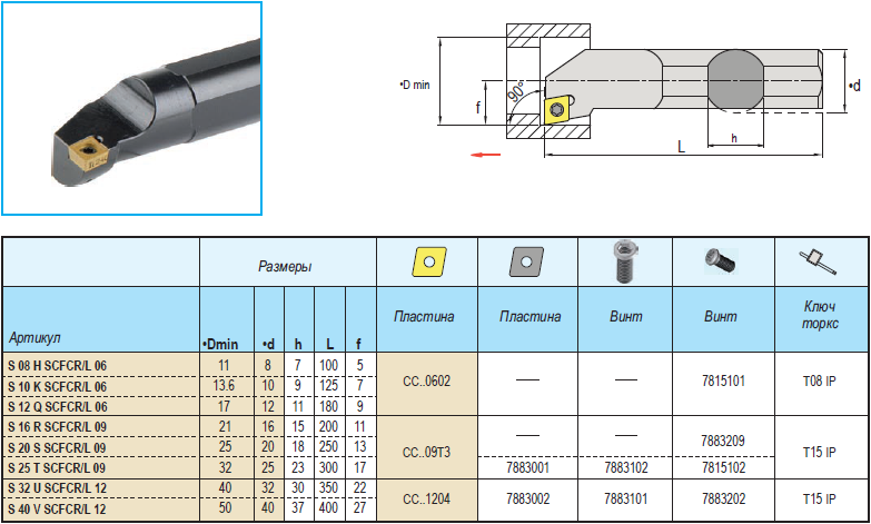 Резец с мех. крепл. SCFCR 06 S12K инструмент предназначенный для обработки металла на станках токарной группы, в том числе на станках с числовым программным управлением.